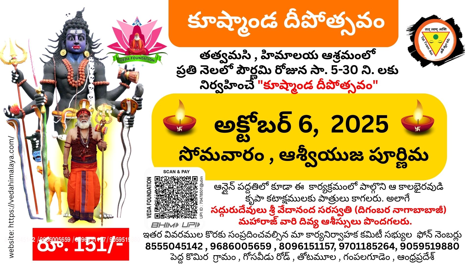 తేది 05-11-2025 బుధవారం ఉదయం 9 గంటల నుండి /వేదిక : తత్వమసి, హిమాలయ ఆశ్రమం , గంపలగూడెం , ఆంధ్రప్రదేశ్