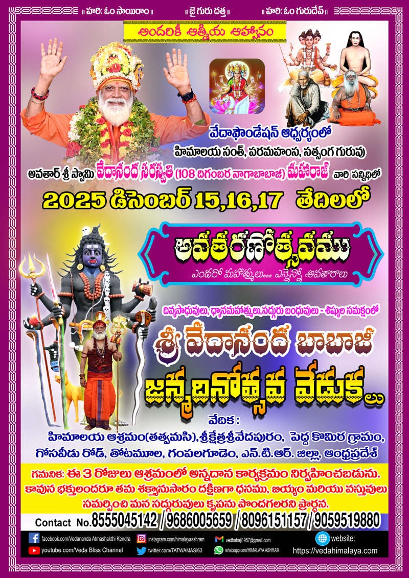 “అవతరణోత్సవం” డిసెంబర్ 15, 16, 17 తేదీలలో eswar y November 30, 2025 0 Comment Uncategorized Social Share: